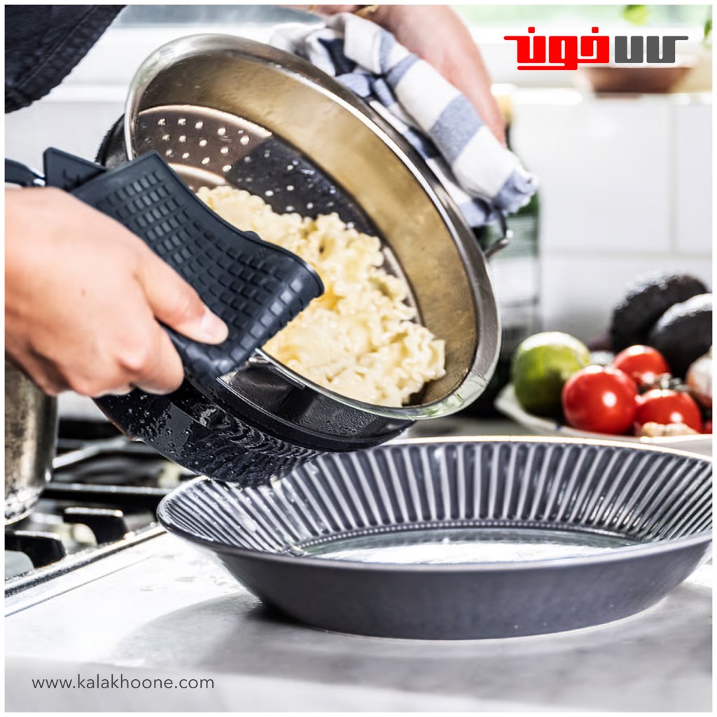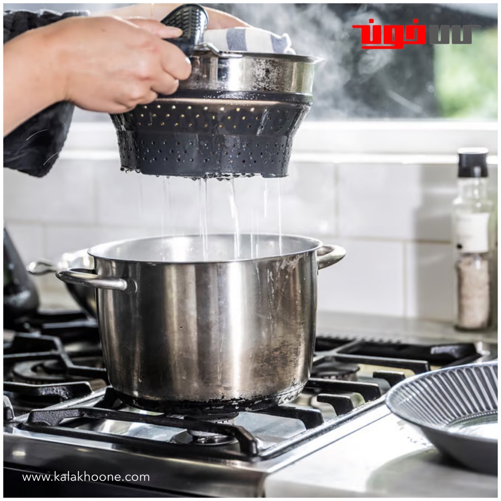 قابلیت استفاده بهعنوان بخارپز (بهصورت نیمه باز) و آبکش ماکارونی (بهصورت کاملاً باز) در اکثر قابلمههای 3 تا 5 لیتری.