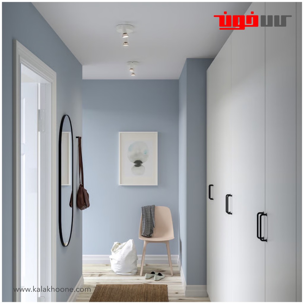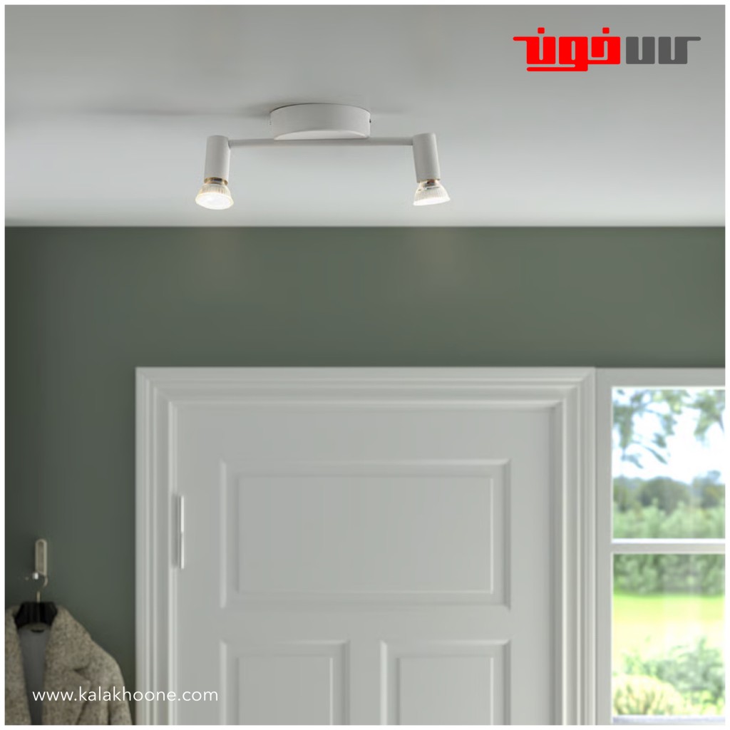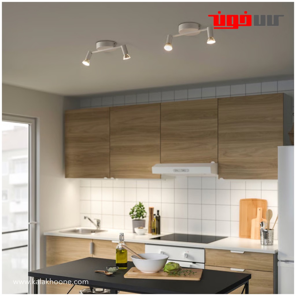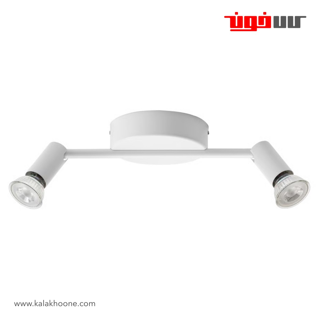 چراغ سقفی است که دارای دو نقطه قابل تنظیم در رنگ سفید است. این چراغ نورپردازی ایکیا به گونه ای طراحی شده است که بر روی سقف نصب می شود و نور متمرکزی را به مناطق یا اشیاء خاص در یک اتاق ارائه می دهد.