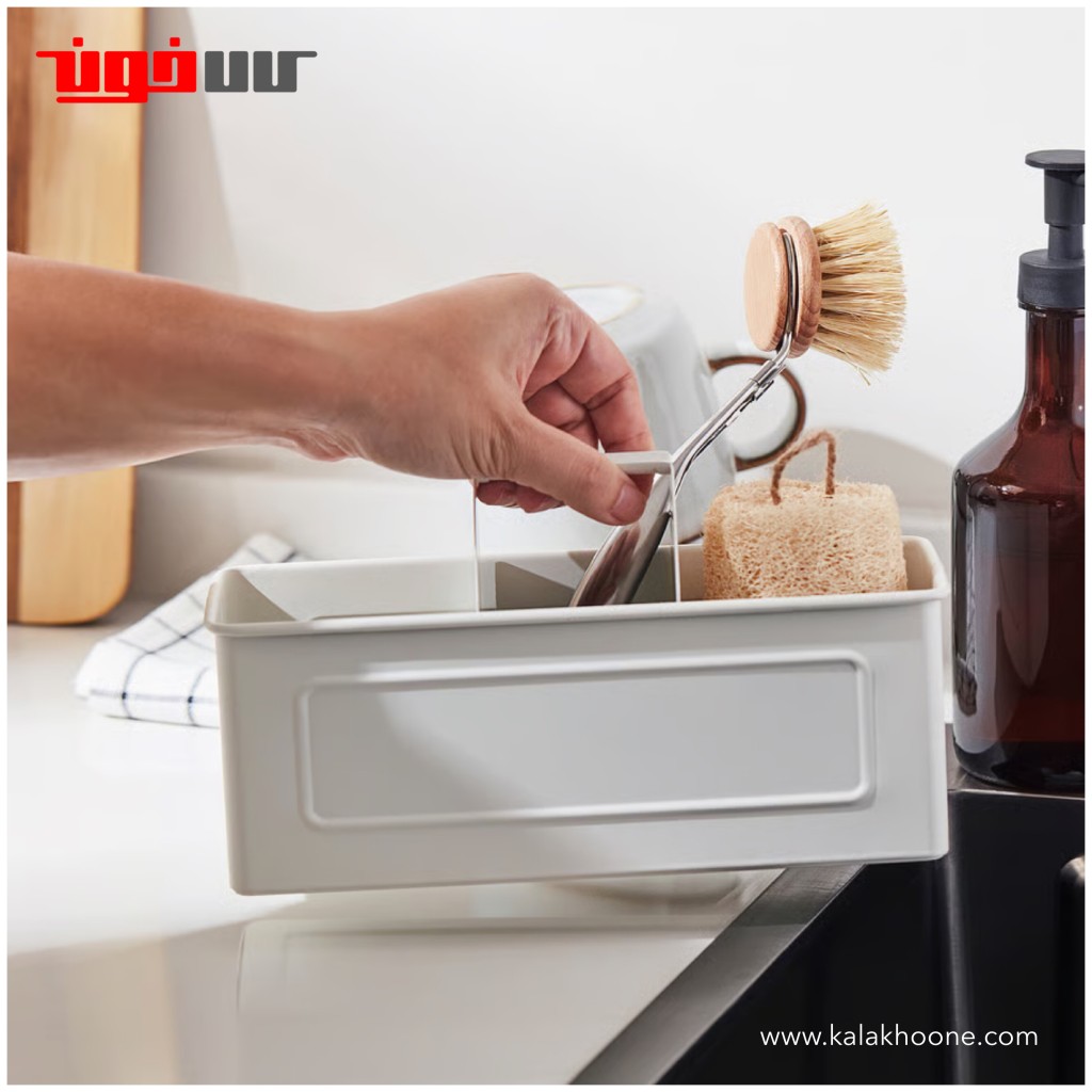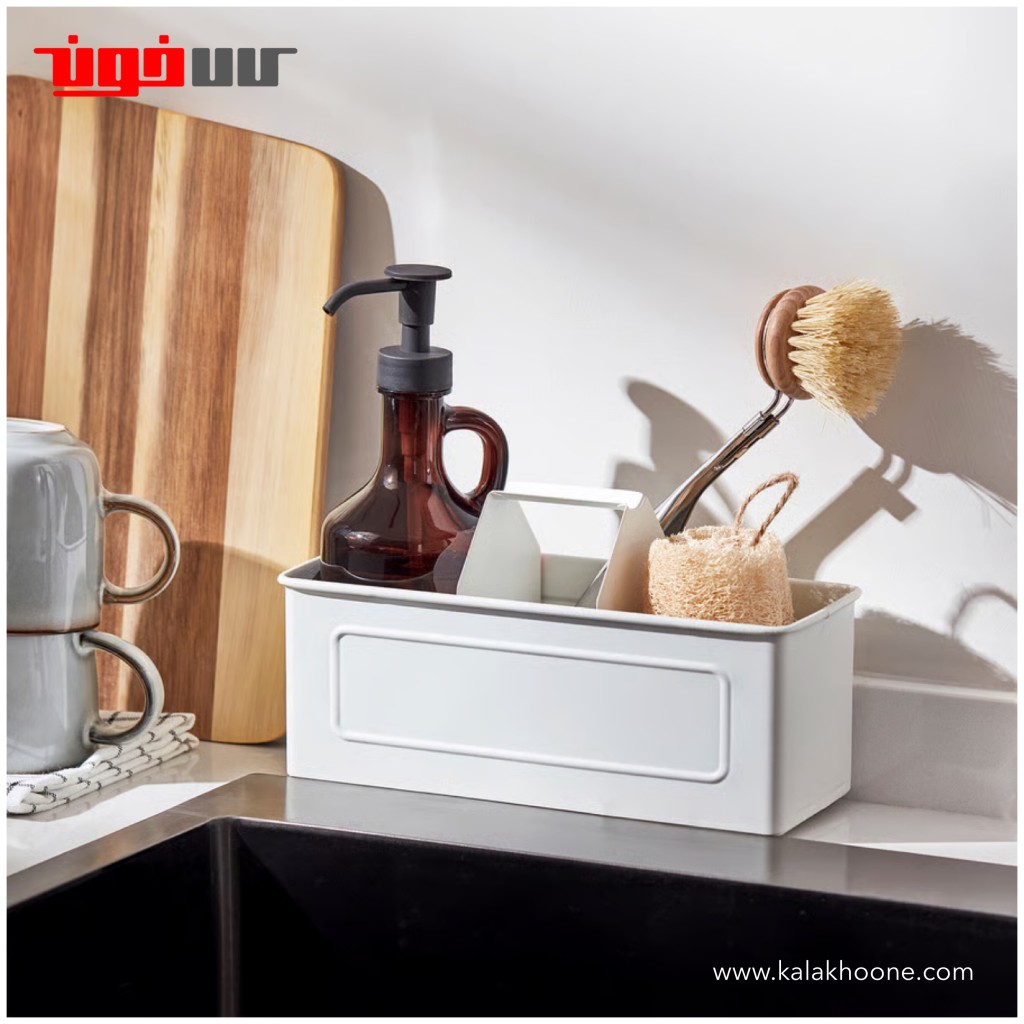 - مناسب برای نگهداری وسایل شستشو مثل اسکاچ، برس شستشو، مایع ظرفشویی و پارچههای تمیزکننده