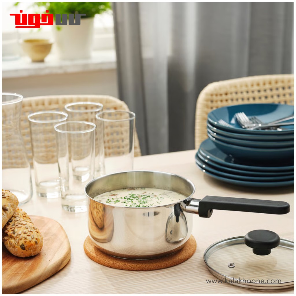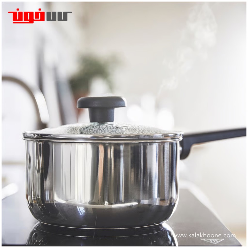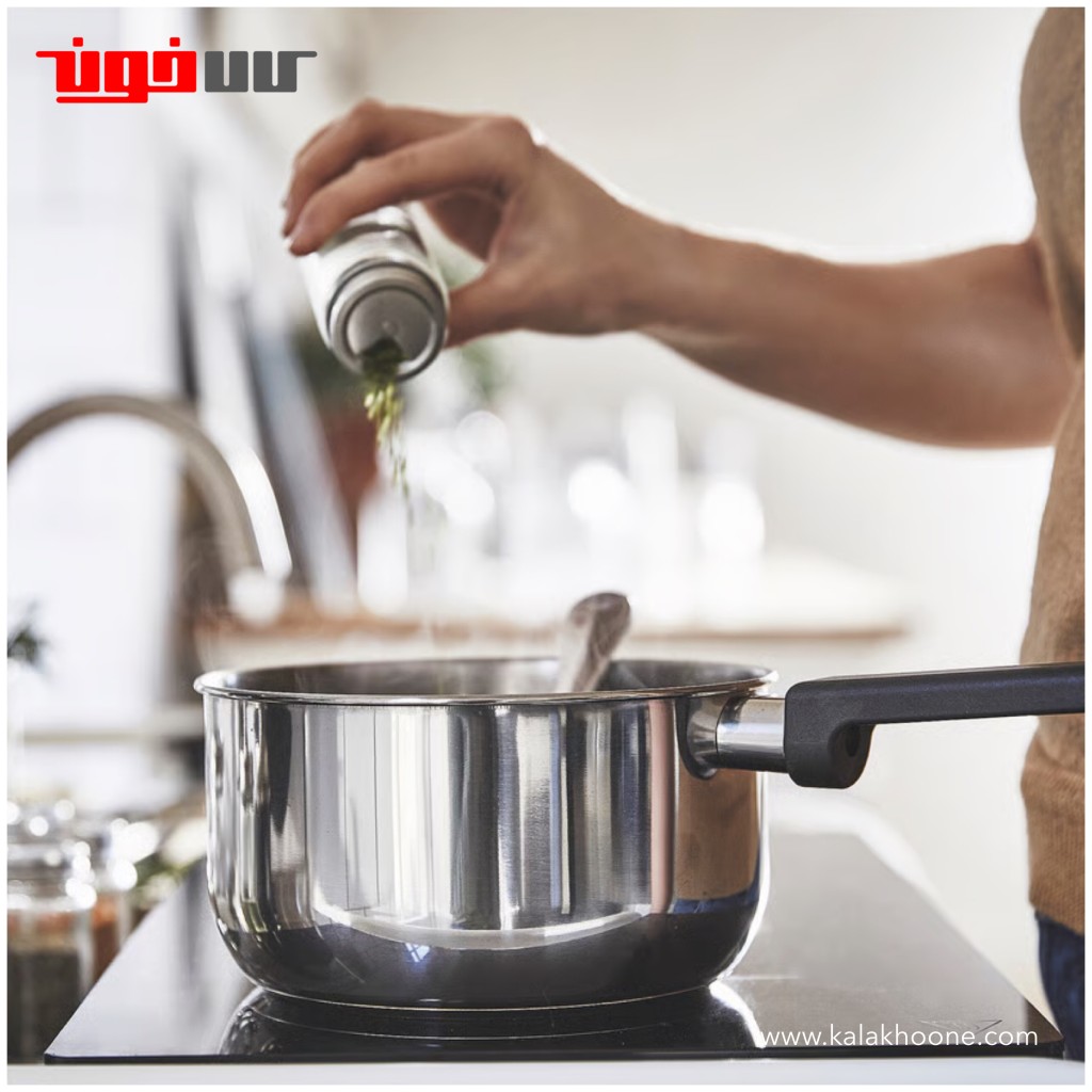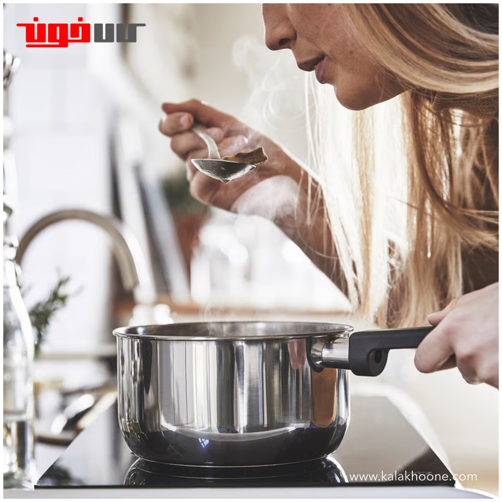 سطح داخلی قابلمه ایکیا ساخته شده از آلومینیوم آنودایز ضخیم؛ حرارت را به سرعت و به طور یکنواخت پخش می کند و سطحی بادوام ایجاد کرده است