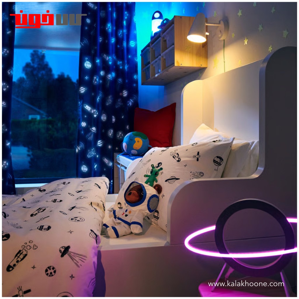 با این چراغ خواب رنگی ایکیا کودک شما میتواند در مورد یک رنگ تصمیم بگیرد یا اجازه دهد نور به طور خودکار بین 7 رنگ مختلف جابجا شود.