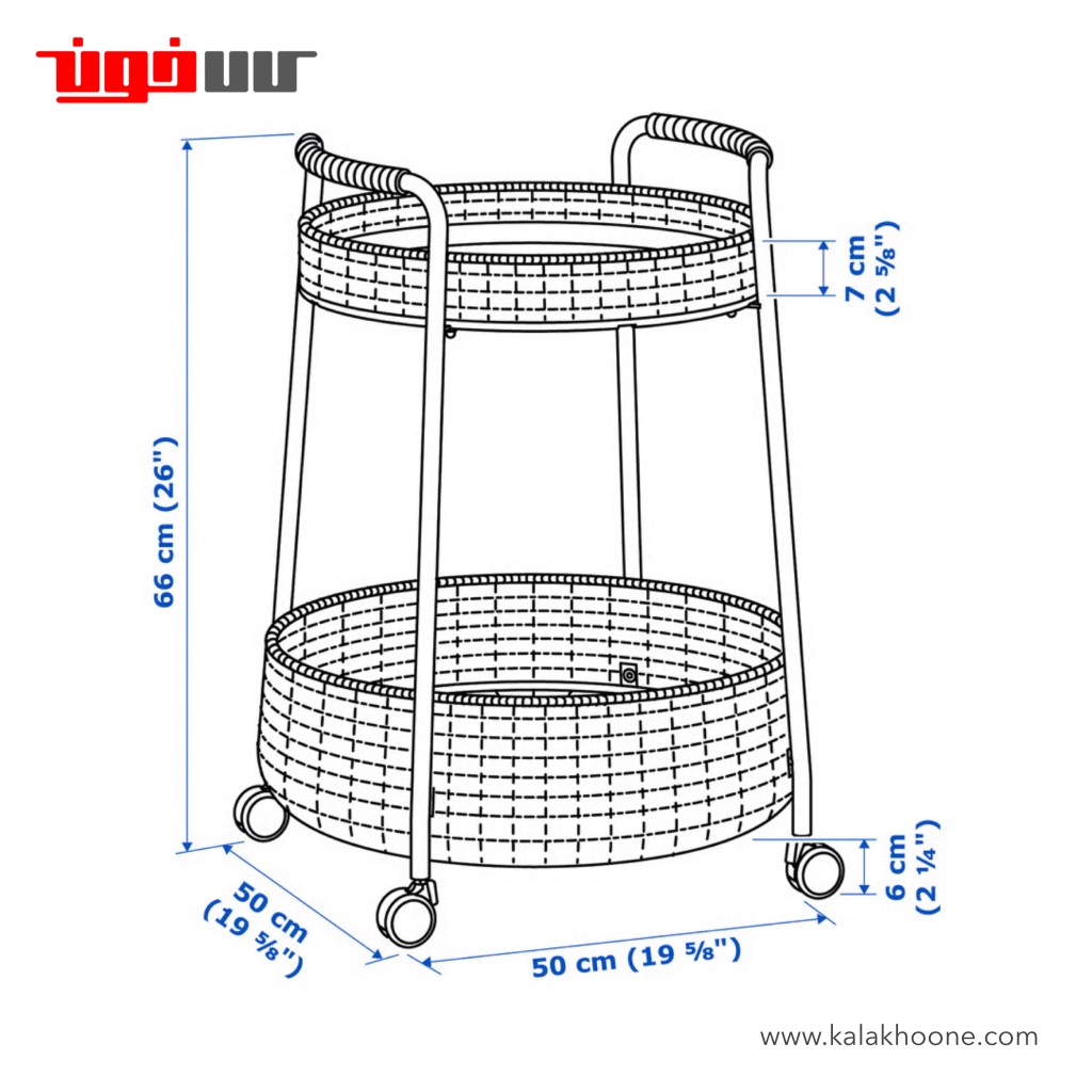 سبد بالایی این ترالی ایکیا تا وزن 5 کیلوگرم و سبد پایین تا 20 کیلو گرم وزن را تحمل می کند.